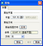 (4) 第4步,选择TOP基准平面为草绘平面,RIGHT基准平面为参照平面,参照平面方向为向右(此为默认设置),如图3.3所示,单击“草绘”按钮,进入草绘模式;