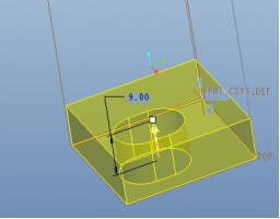 (6) 在“拉伸特征”操控板中,指定拉伸特征深度的方法为“盲孔”(此为默认设置),输入“深度值”为9,如图3.6所示,单击