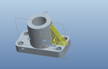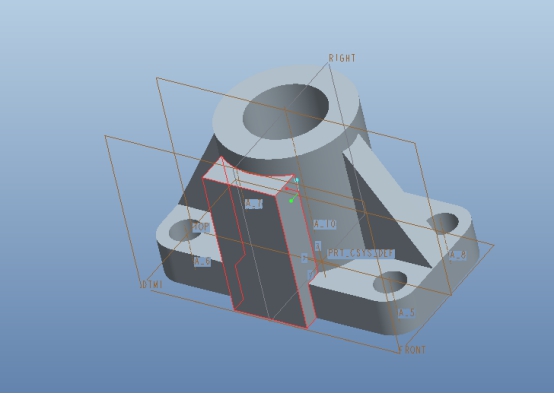 (1)选择图3.34的拉伸物体,选择图3.35 编辑命令中的镜像,选择图3.36中的RIGHT面,生成如图3.36的镜像物体。