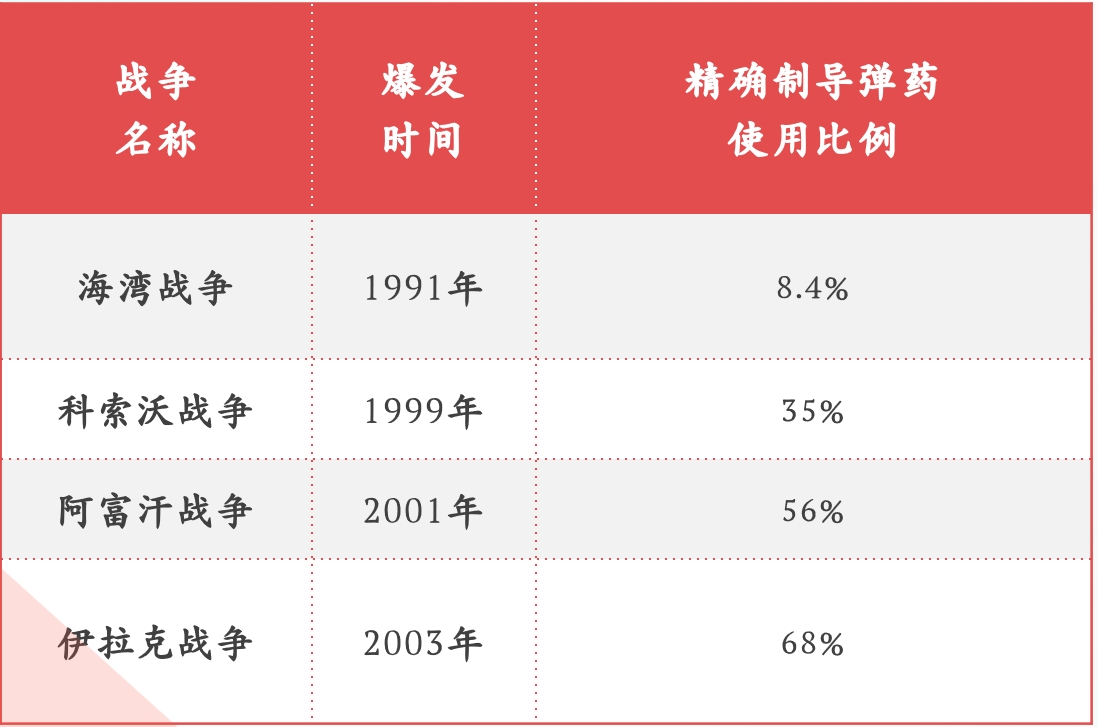 以上战争中所使用的精确制导武器所占比例如下图所示: