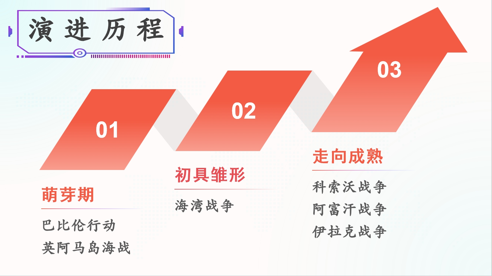 战争形态从机械化战争过渡到信息化战争,大致经过了以下三个阶段: