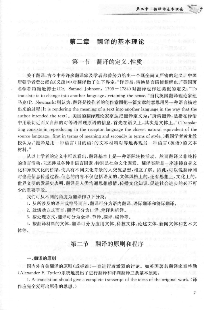 3、拓展阅读。1)此页第一节 翻译的定义、性质。