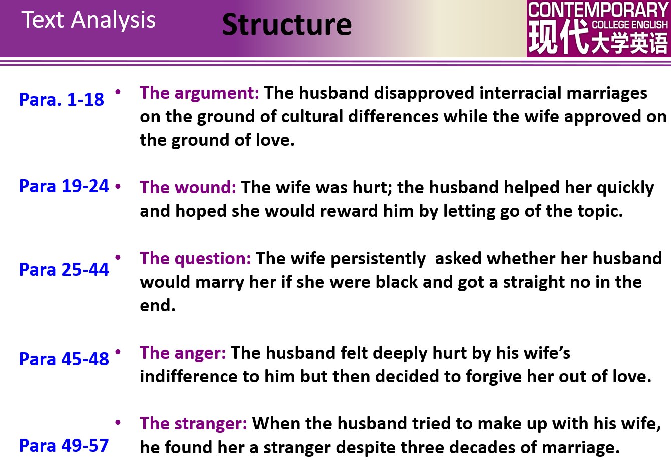 The following are two different kinds of structure classification, choose the one you feel more reasonable and follow it to skim the text.