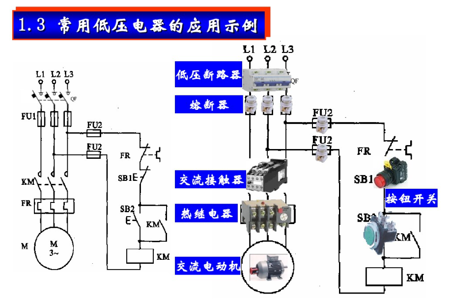 2、掌握常用低压断路器、熔断器、继电器、接触器、主令电器图形与文字符号的使用方法;