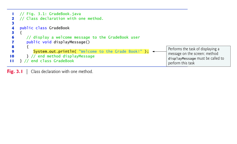 }In a class, you provide one or more methods that are designed to perform the class’s tasks.