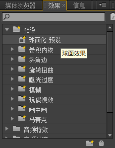 预设动画特效包括画面特效组、入画与出画预设动画。在不熟悉视频特效操作时,可以使用预设特效组中的预设特效,能够直接得到想要的效果。