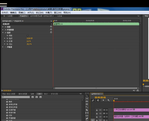 音频素材中使用延迟效果器,调节延迟时间为50%,然后调节混合选项参数可以到一个仿真的回声效果。使用延迟效果器,然后通过条件延迟时间和混合参数来控制回声的频率和出现声音的前后。