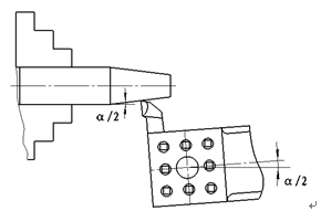 (2)摆动小滑板:将小滑板下转盘的螺母松开,把转盘基准零线对齐刻盘上α/2的刻度线,上紧螺母。