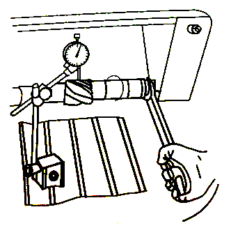(4).检查刀齿的径向圆跳动和端面圆跳动。用百分表进行检测,检测时,将磁性表座吸在工作台面上,使表的测量触头触到铣刀的刃口部位,用扳手向着铣刀后刀面的方向旋转铣刀,观察表的指针在旋转一周内的变化情况,如图所示。一般要求不超过0.05-0.08mm。