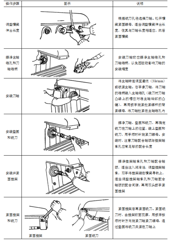 (1).铣刀的旋转方应向与刀轴紧刀螺母的旋紧方向相反。