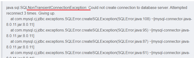 问题描述:java.sql.SQLNonTransientConnectionException: Could not create connection to database server