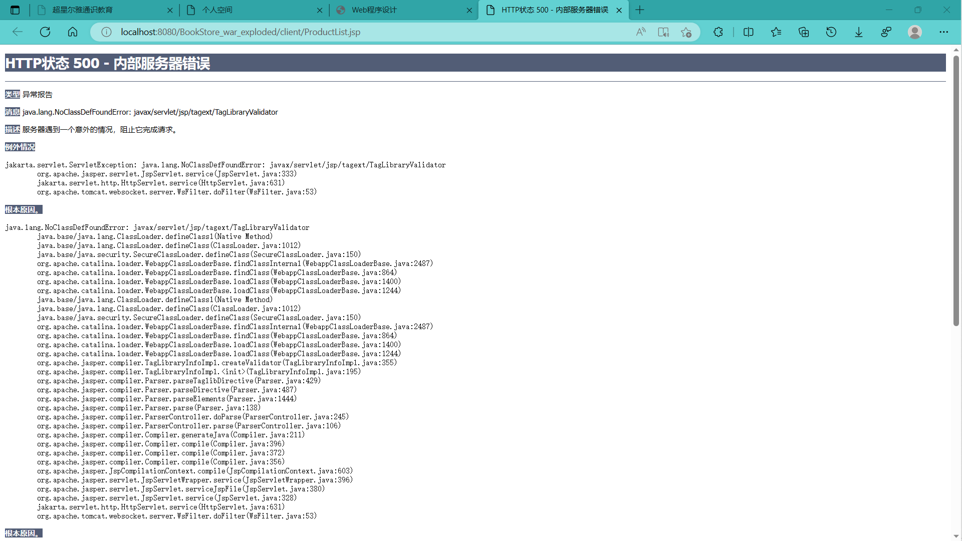 问题描述:采用JSTL的页面提示HTTP状态500内部服务器错误。