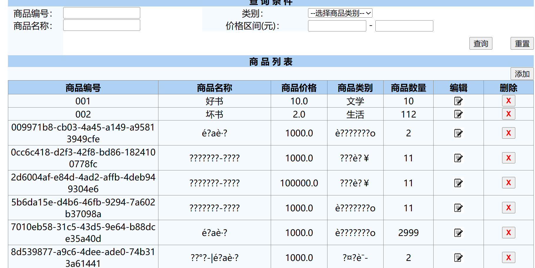 如果数据库表对应也显示中文乱码,可能是在添加商品时产生的中文乱码。