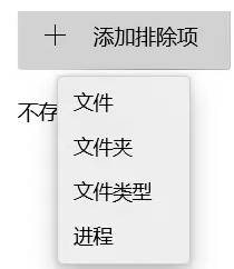 步骤五:点击添加排除项——文件类型,使用后缀名排除,建议把 .exe 和 exe都加上.
