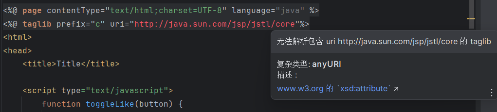 问题描述:无法解析包含uri http://java.sun.com/jsp/jstl/core的taglib