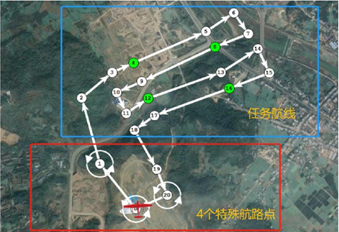 任务动作:预转弯:利用GPS导航提前量,在到达目标航路点之前提前执行转弯动作。