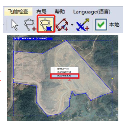 使用鼠标左键规划区域Ctrl+Z可撤销最后一个规划区域设置完成后在规划区域内鼠标右键点击“完成所有区域”,结束规划
