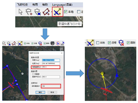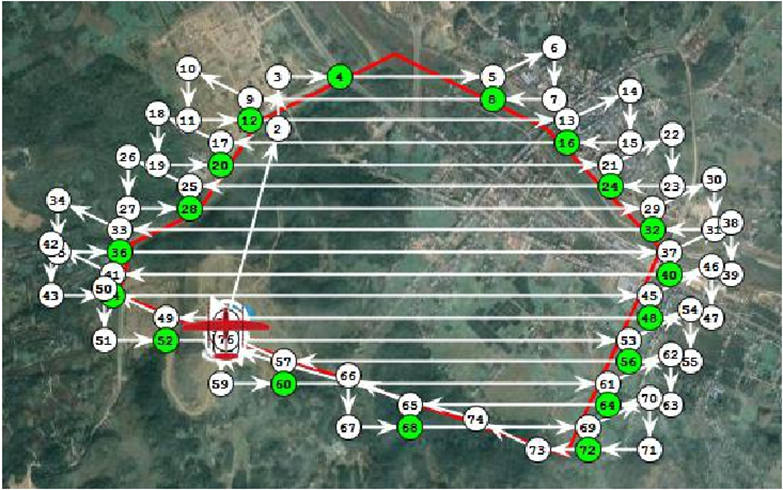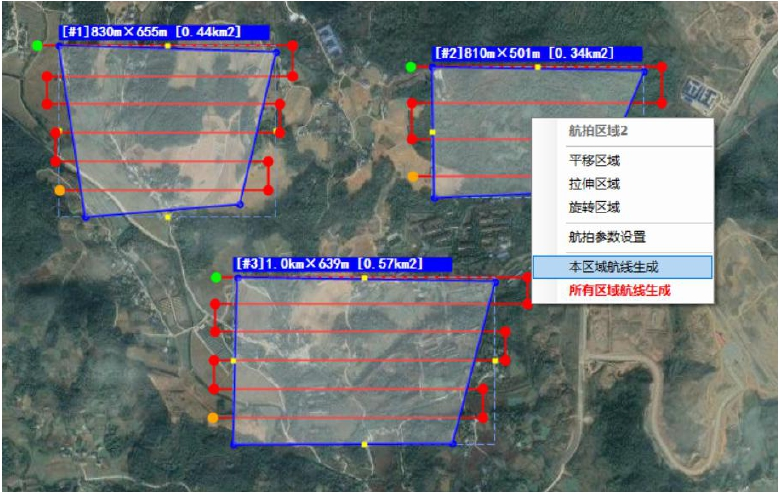 所有区域航线生成:已经进行参数设置的所有区域生成一条封闭的航线