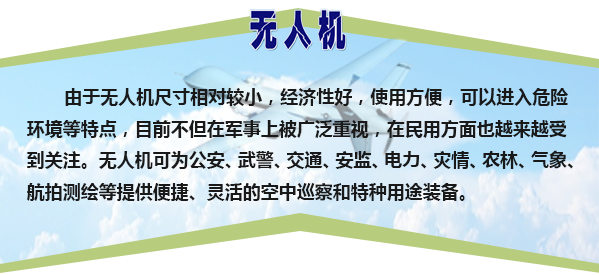 如:美国阿拉斯加发生森林大火,烟雾使其他飞机被迫停飞,无人机提供热成像图像,保证航线运行;日本福岛核电站事故之后,运用无人机从空中观察瘫痪的反应堆;我国汶川地震灾区,多架国产的无人飞机,拍摄到灾区情景,为地面指挥救援人员提供了清晰可靠的情报。