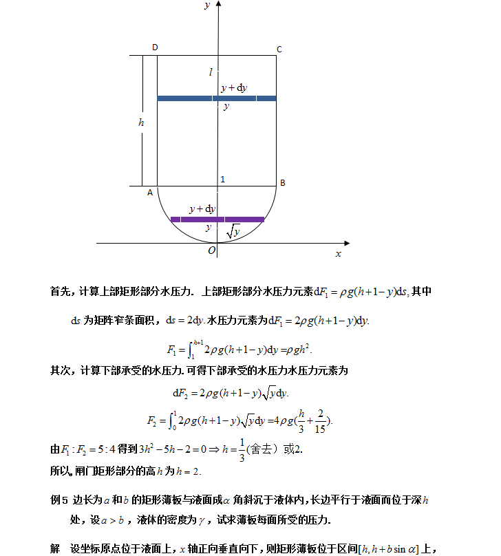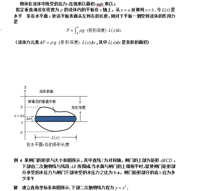 在这一讲中,我们介绍了用元素法,求变力沿直线做功及流体力问题。同学们在遇到此类题目时要学会寻找所求元素,运用定积分来求解。