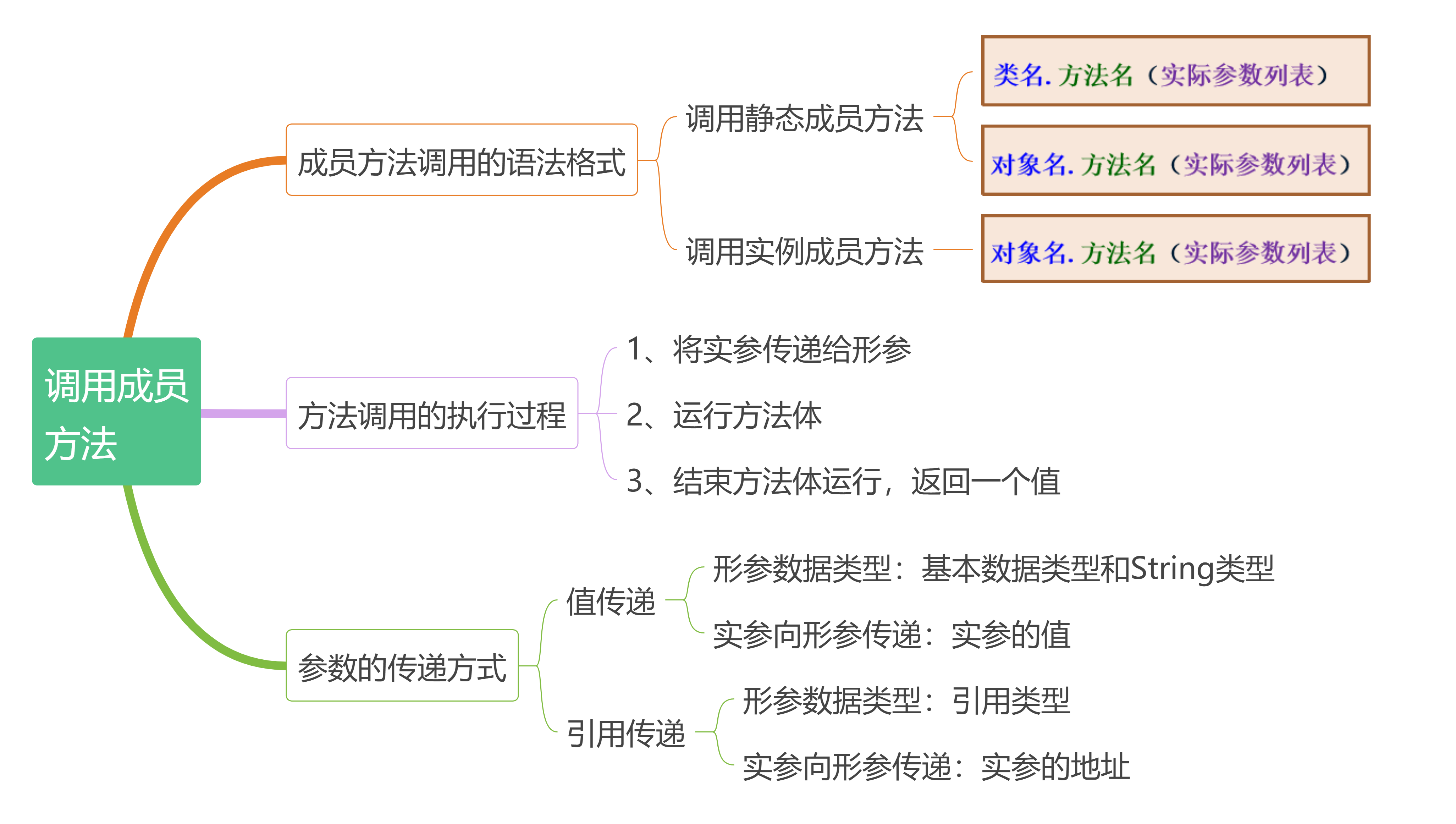 3、调用方法时参数的两种传递方式:值传递和引用传递。