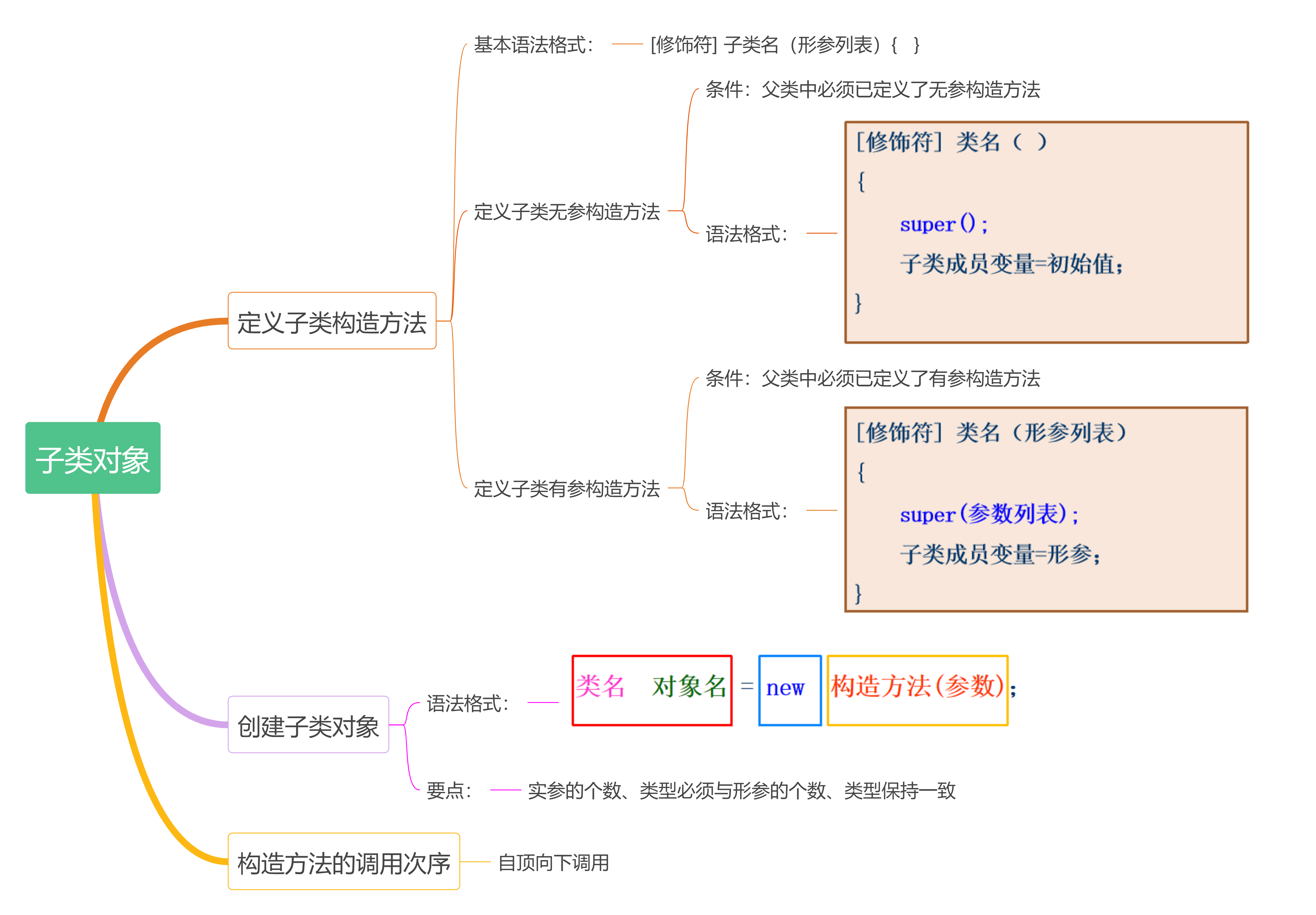 1、掌握定义子类构造方法的语法格式。