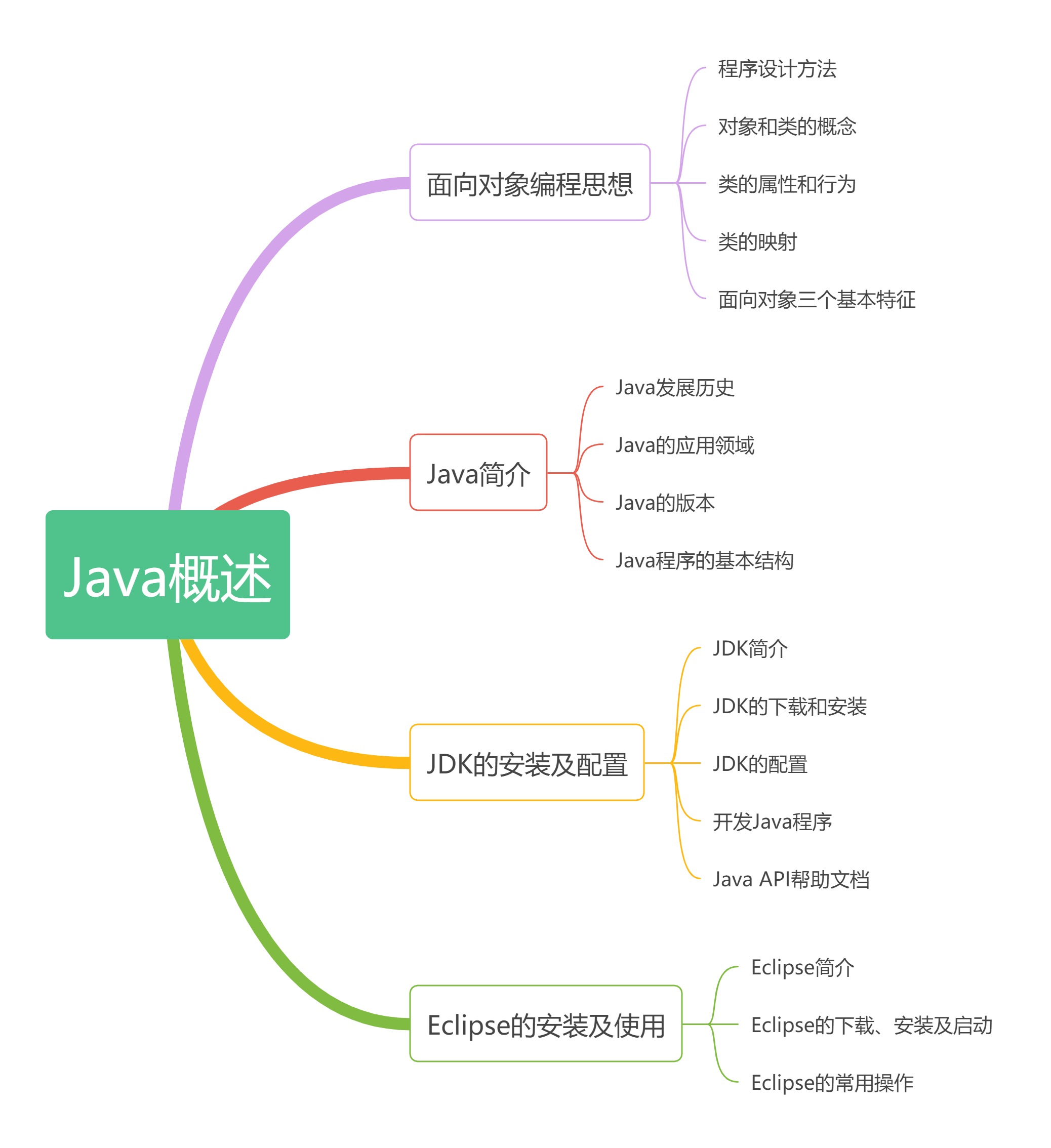 知识目标:了解面向对象编程思想;了解Java的历史和发展,Java的主要应用领域; 掌握Eclipse等Java开发工具来编写java程序;掌握java项目开发的基本流程。