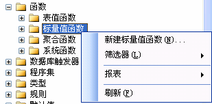 v(1) 标量函数用RETURNS子句返回一个确定类型的标量值,其函数值类型为SQL Server的系统数据类型(text、ntext、image、cursor、timestamp、table类型除外)。函数体语句定义在BEGIN…END语句内。