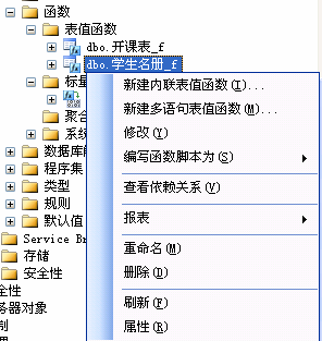 【例7.83】用可视化方式修改和删除已建好的“学生名册_f”函数。