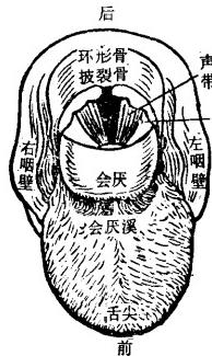 图 2 0 示由上视下喉头各部的位置