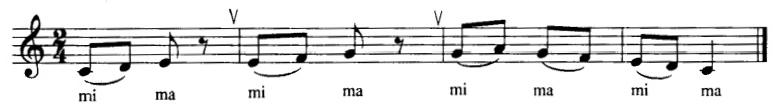 以上练声曲,均可以半音升降上下移动。唱简单的练声曲,便于集中注意在发声方法上。歌唱者始终要处在平静、兴奋、不急不躁的心理状态中,才能使练习取得良好的效果。