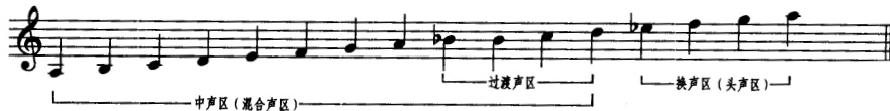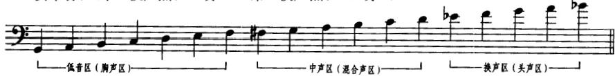 在这里,我们宁愿把声区的区分建立在以上章节所描述的基础上。这种区分可能不科学,但为实践目的却更有用。