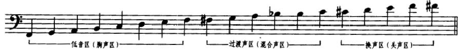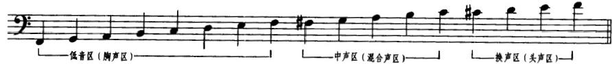 女低音:〔第一换声点:f¹或 e¹, 第二换声点:#c²或c²〕