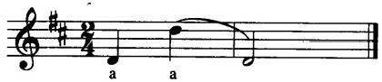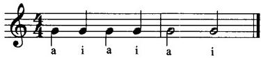 在同音高上真、假声转换练习: