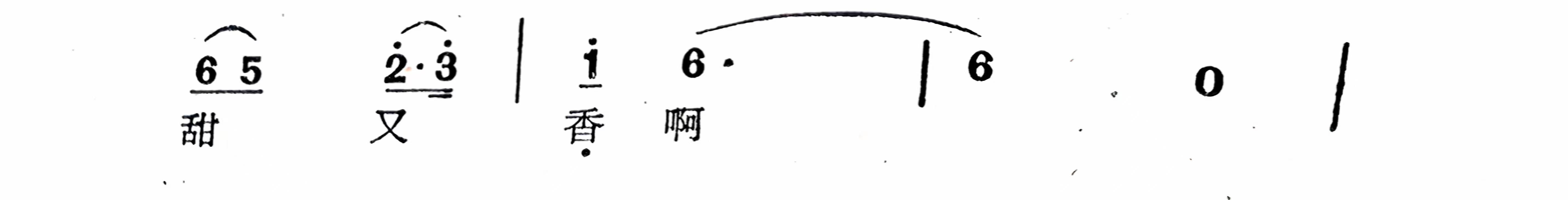 如《请茶歌》中“甜又香啊”的“香”字是采用紧咬缓发的艺术手法。“香”字紧咬缓发手法的运用,一方面表明浓郁的茶香不仅扑鼻而来,而且香味甘醇,使人赞叹不已;同时另一方面突出和强调了革命根据地人民对红军的由衷热爱。