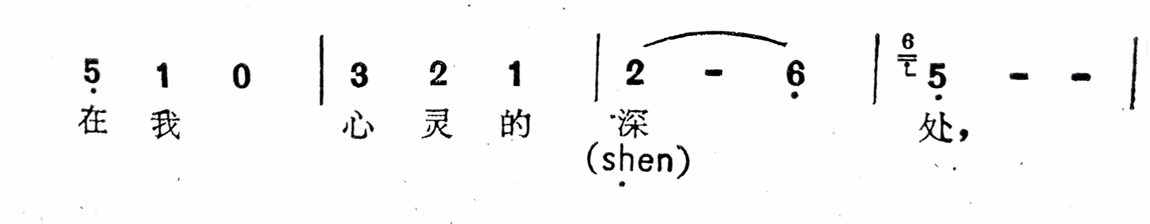 如歌曲《心中的玫瑰》中第一句“在我心灵的深处”的“深”字,就采用延长字头中声母—“sh”(诗)的咬法。