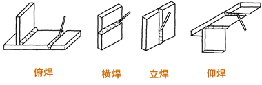 1)俯焊; 2)横焊; 3)立焊; 4)仰焊