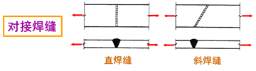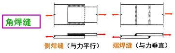 2)角焊缝——正面角焊缝、侧面角焊缝、斜向角焊缝