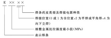 焊条的表示方法:E后面加4个数字,E—表示焊条(Electrode)