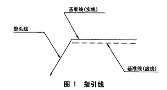 指引线:由箭头线和基准线(实线和虚线)组成,如图1。