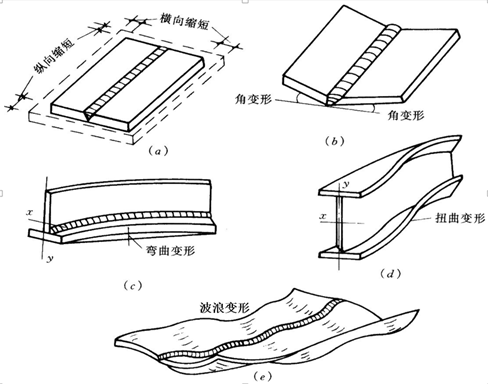 纵向收缩;横向收缩;弯曲;角变形;波浪变形;扭曲变形。
