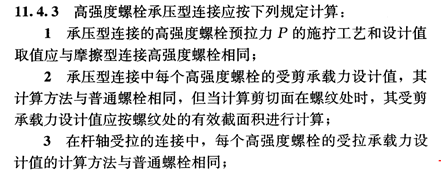高强度螺栓承压型连接的工作性能与普通螺栓完全相同,只是由于螺杆预拉力的作用和高强度钢的应用使连接性能优于普通螺栓连接。