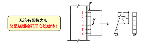 连接保持不松动,所螺栓均处于受拉状态,螺栓群绕形心线旋转!