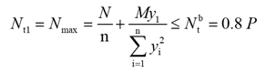 2)弯矩M和轴拉力N作用下,最上一排螺栓受拉最大Nt1: