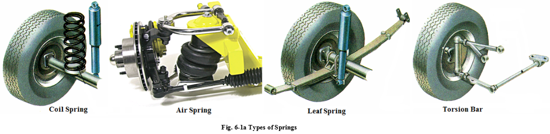 There are four major types of spring in use today: coil spring, air spring, leaf spring and torsion bar as shown in Fig.6-1a.