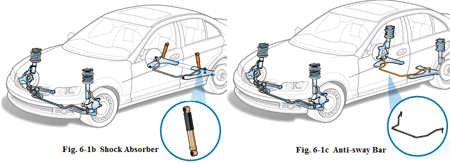 Anti-sway bar also called stabilizer bar that will help stabilize the car and reduce its side-to-side motion when it is cornering. It is simply a metal rod connected to both of the lower control arms (see Fig.6-3).