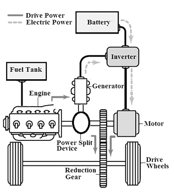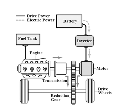 Generally, HEV of this kind has two power drive devices: one is an internal combustion engine (ICE) and the other is an electric motor.They can provide maximum power and fuel economy with minimume missions. Nowadays, the electric motor, generator and battery pack all work together in a car on behalf of the hybrid concept.