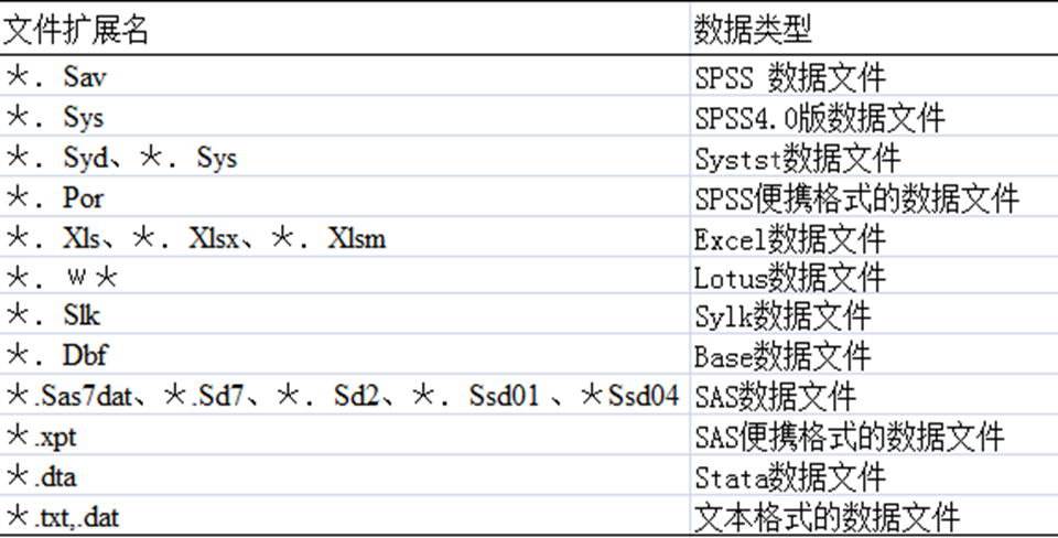 2. SPSS可以直接打开的数据类型