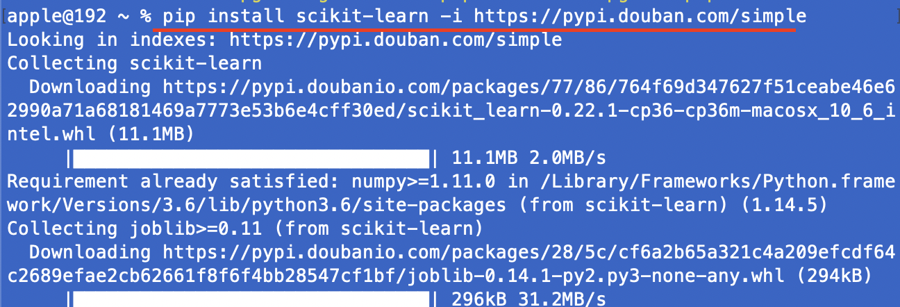 pip install scikit-learn -i https://pypi.douban.com/simple