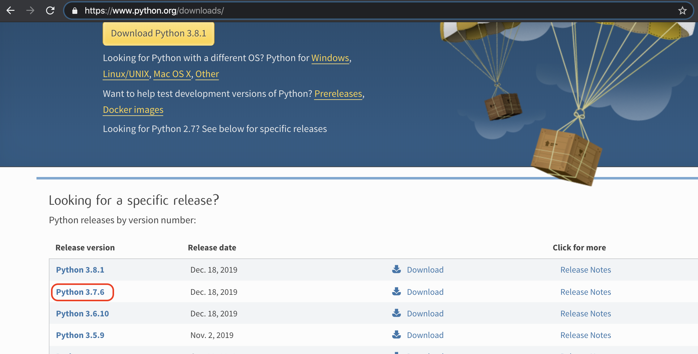 选择3.7.6版本,moacOS和window分别选择64位安装包
